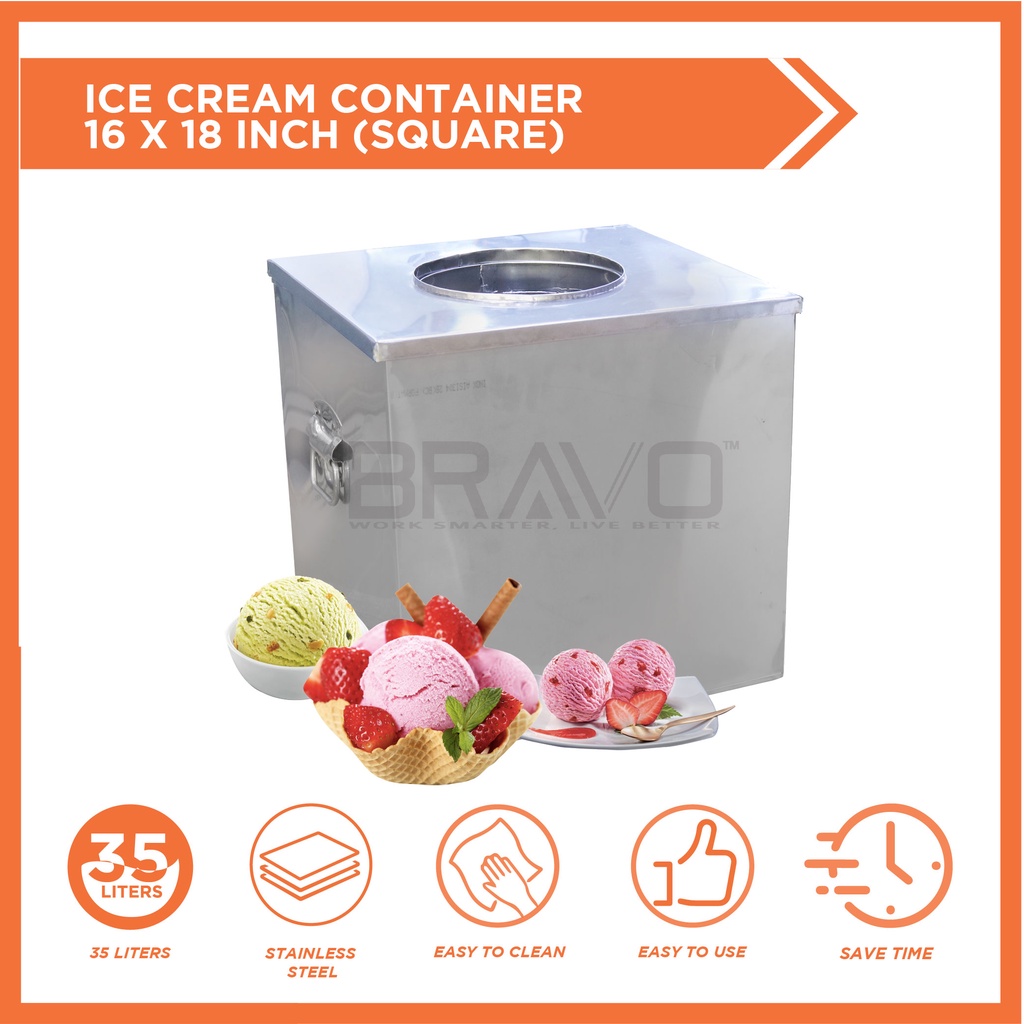 Bravo Tong Aiskrim Ice Cream Container 16x18 Inch Stainless Steel Rumah Party Kenduri Katering Dessert Tepi Jalan Shopee Malaysia